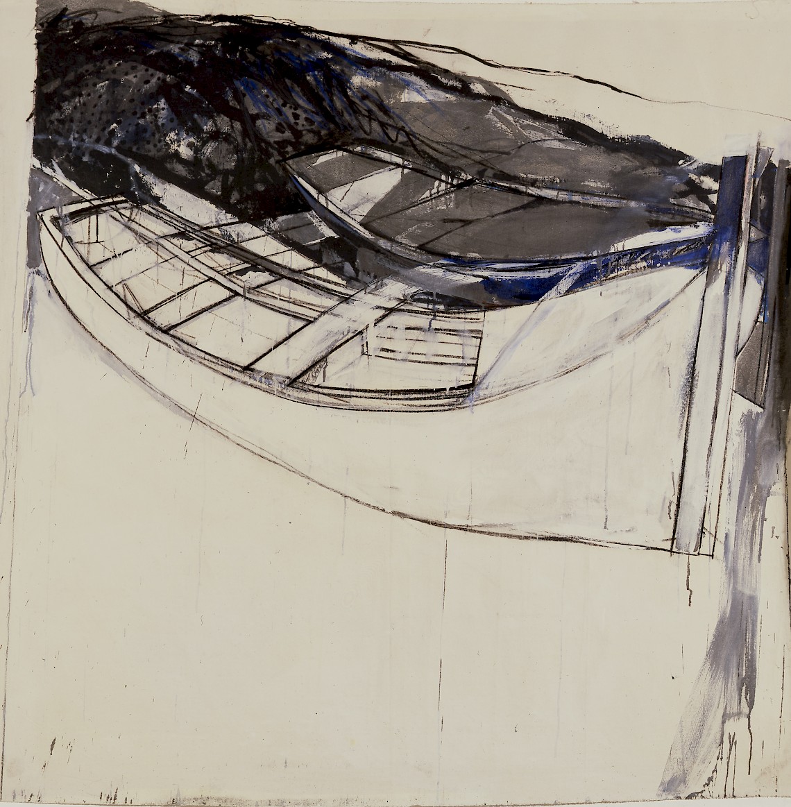 Kohle, Kreide, Graphitpulver, Acryl auf Leinen