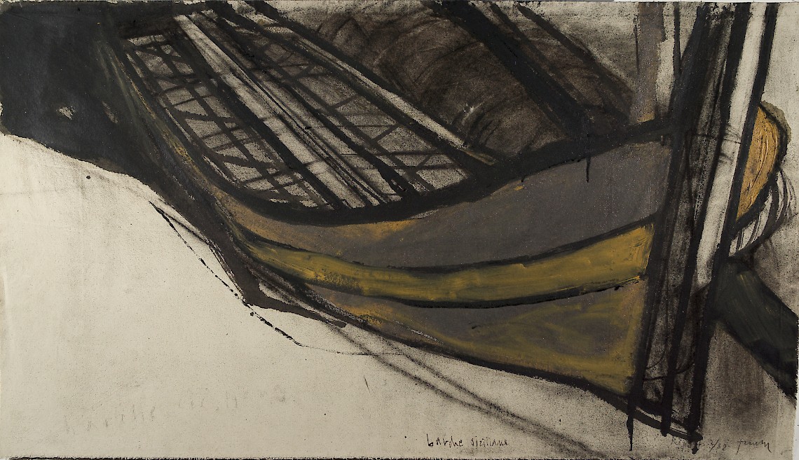 Kohle, Gouache, Tusche auf Nessel