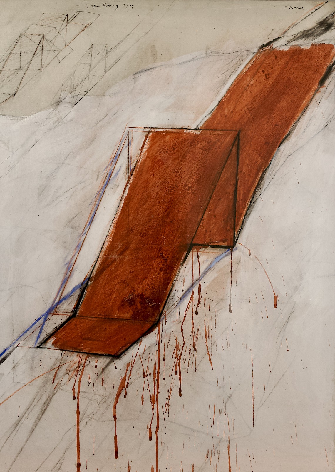 Kohle, Kreide, Tusche, Gouache auf Karton