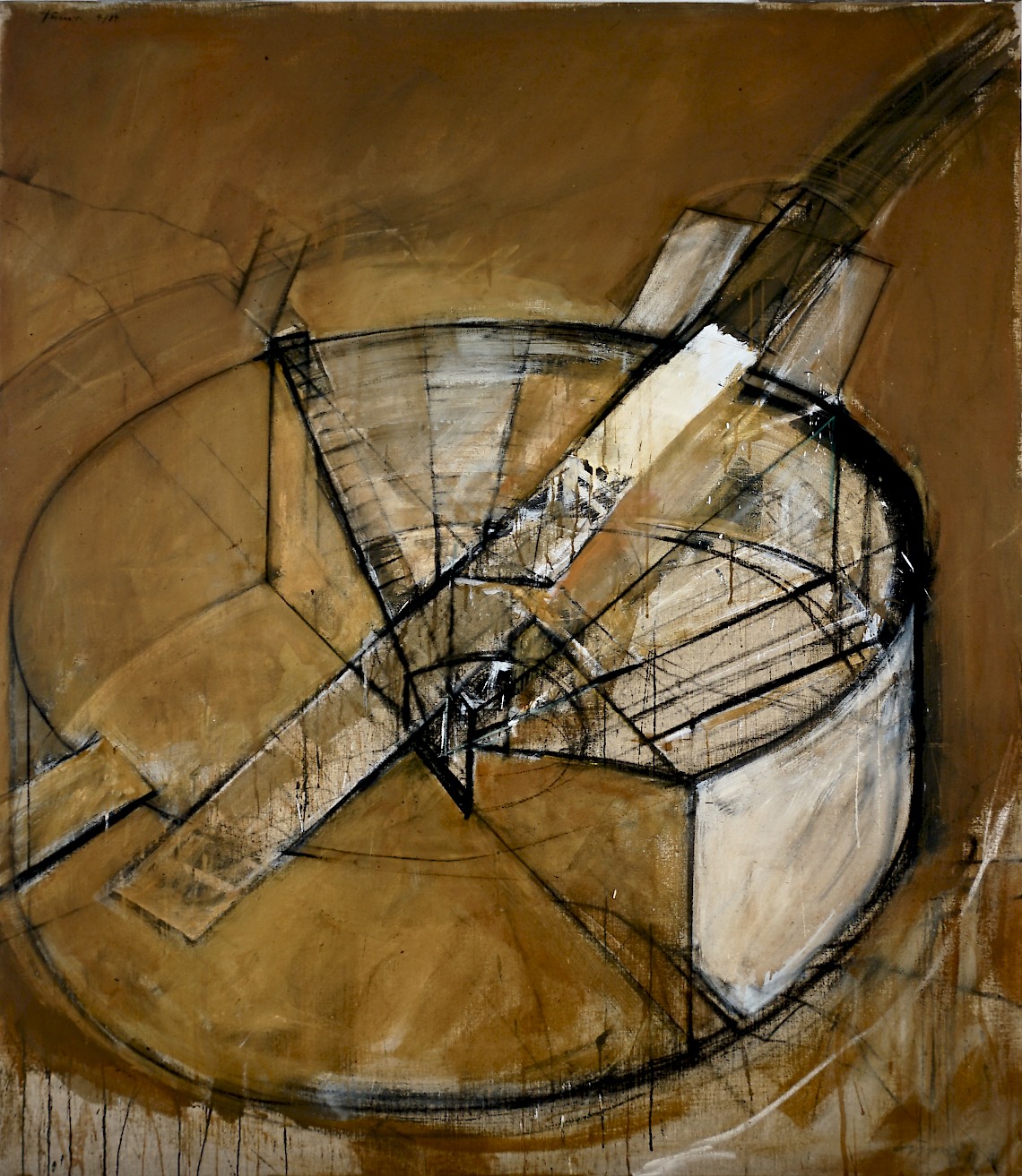 Kohle, Kreide und Binderfarben auf Leinwand