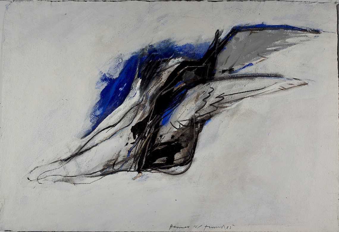 Gouache, Kohle, Kreide, Deckweiß auf Bütten
