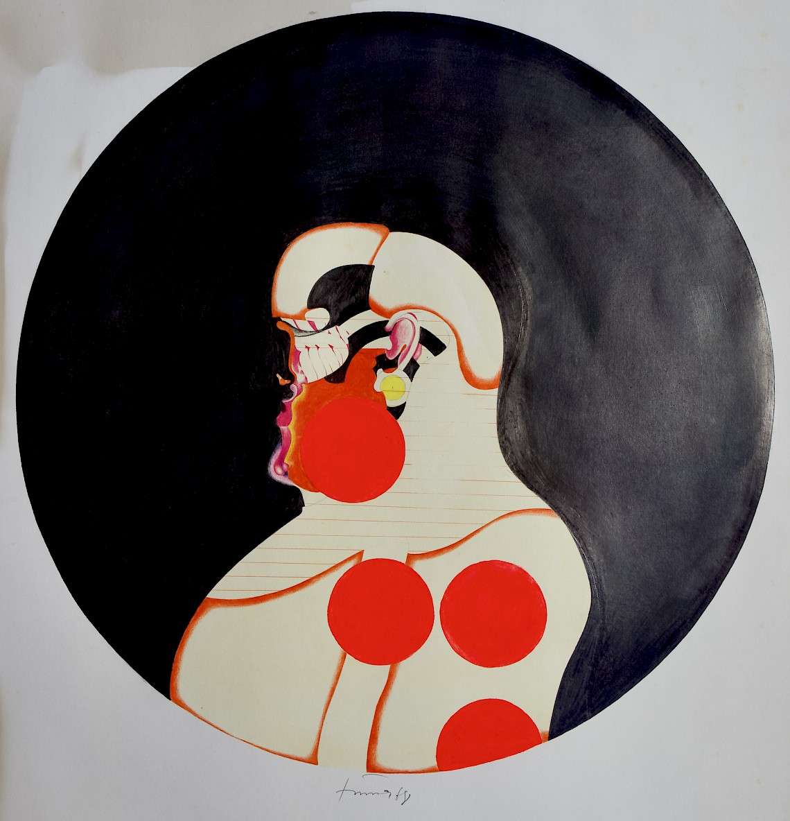 Farbstift, Graphit, Kasein-Leuchtfarbe auf Karton