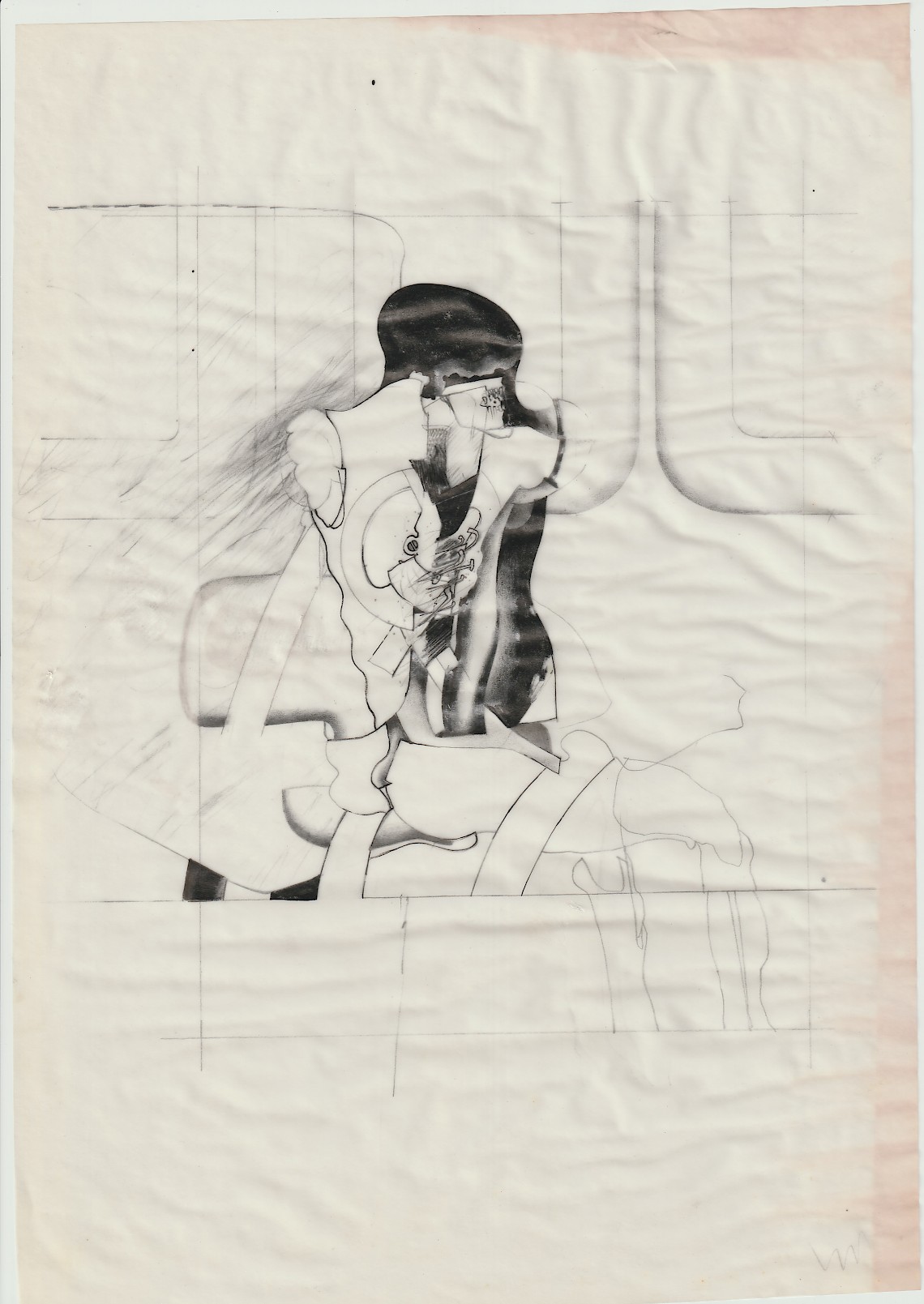 Bleistift, Tusche auf Transparent-Papier