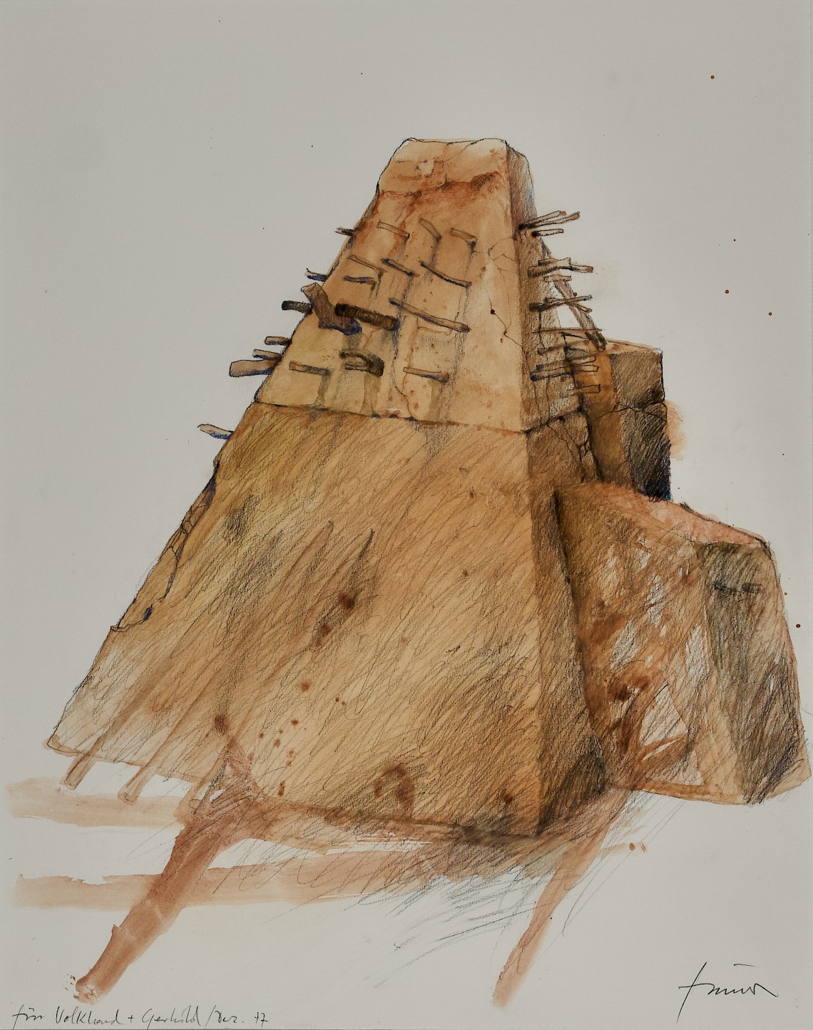 Bleistift, Farbstift, Tusche auf Karton