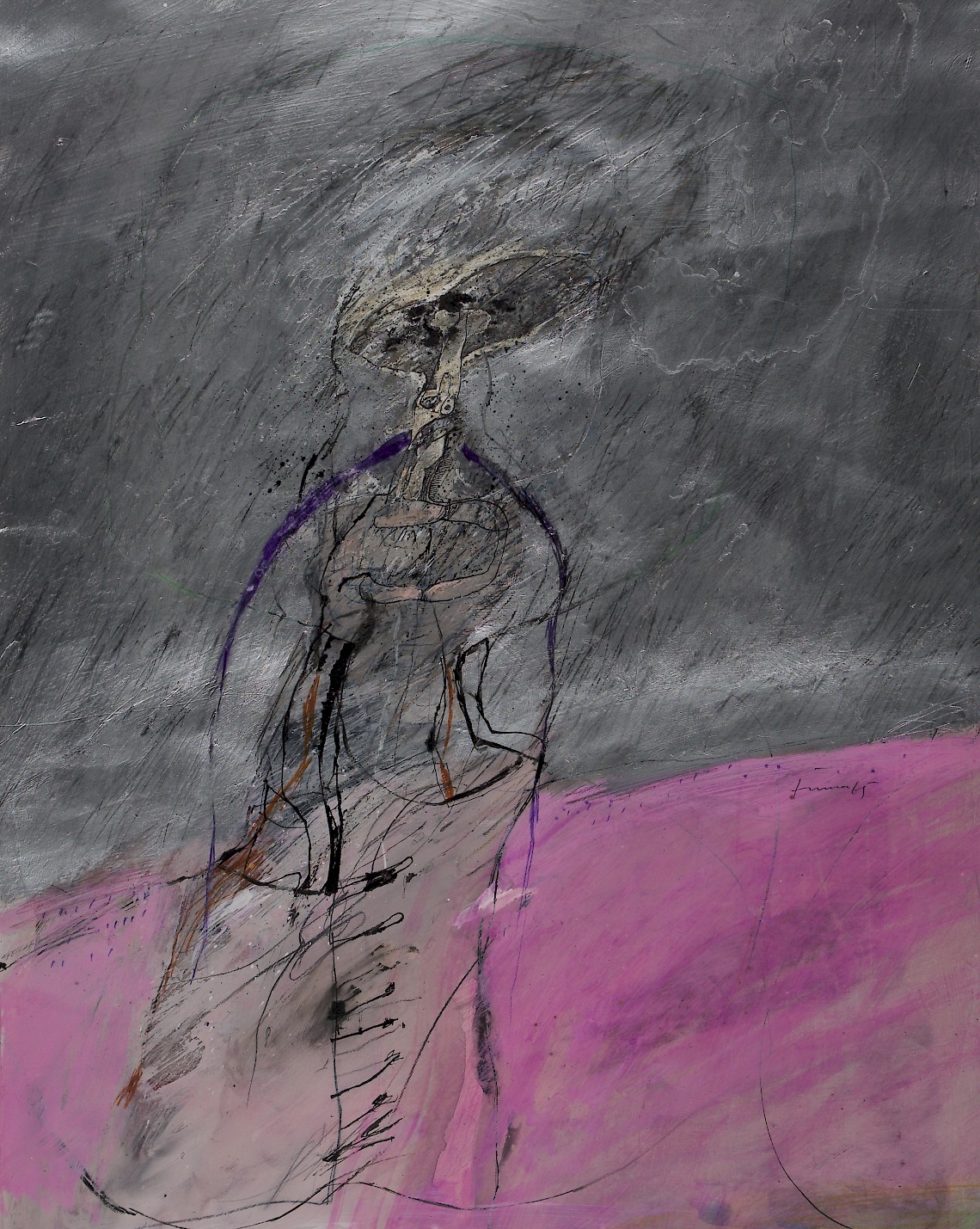 Tusche, Gouache, Silberbronze, Deckweiß auf Karton