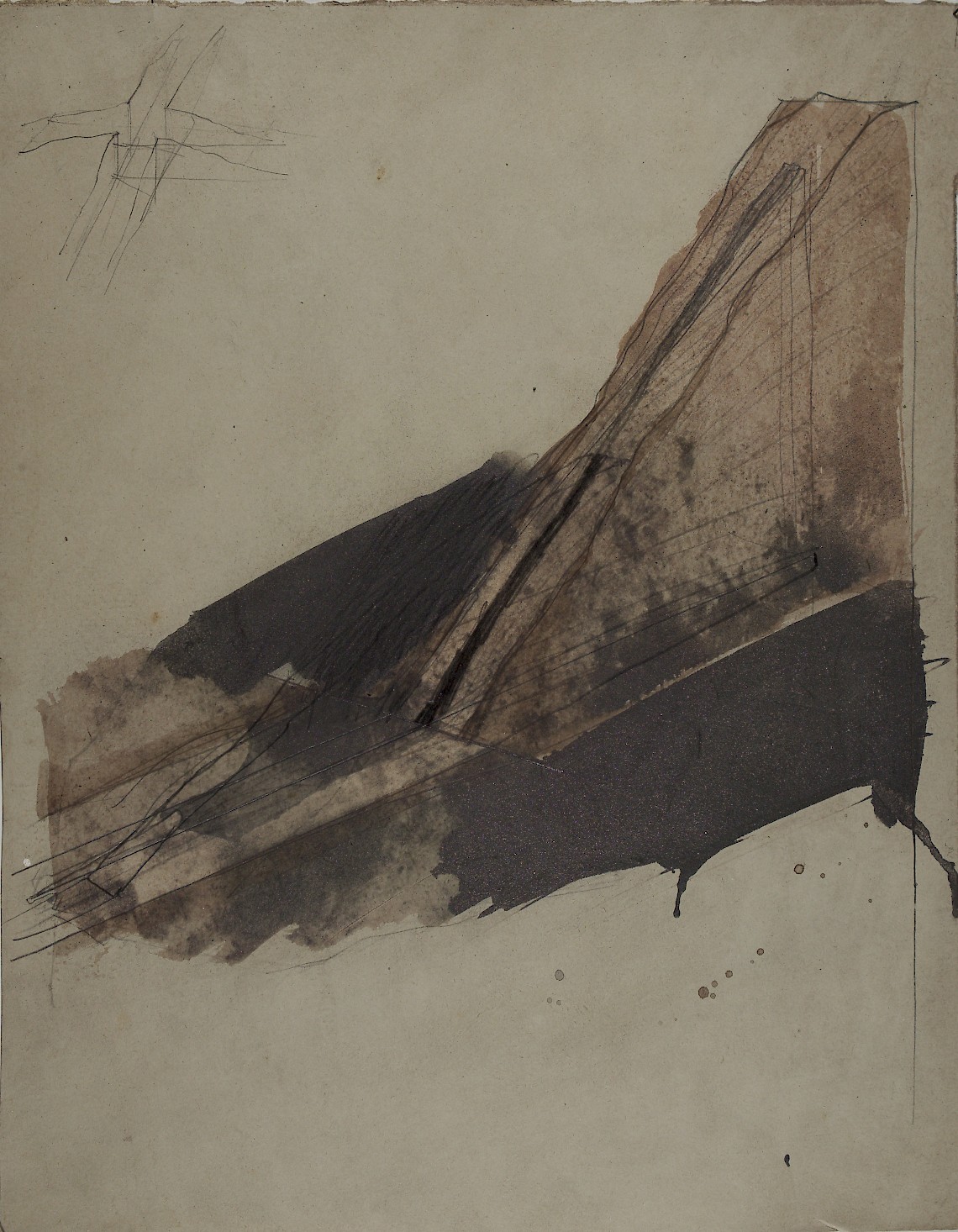 Bleistift, Tusche, Graphitpulver auf getöntem Papier