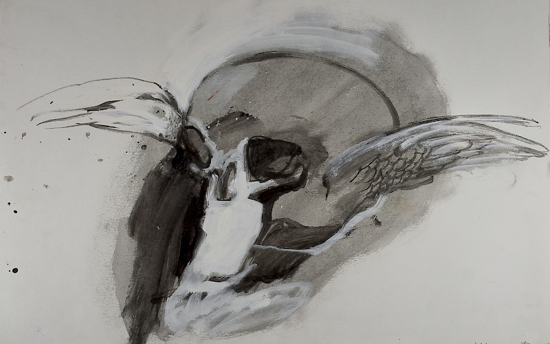 Gouache, Tusche, Deckweiß auf Karton