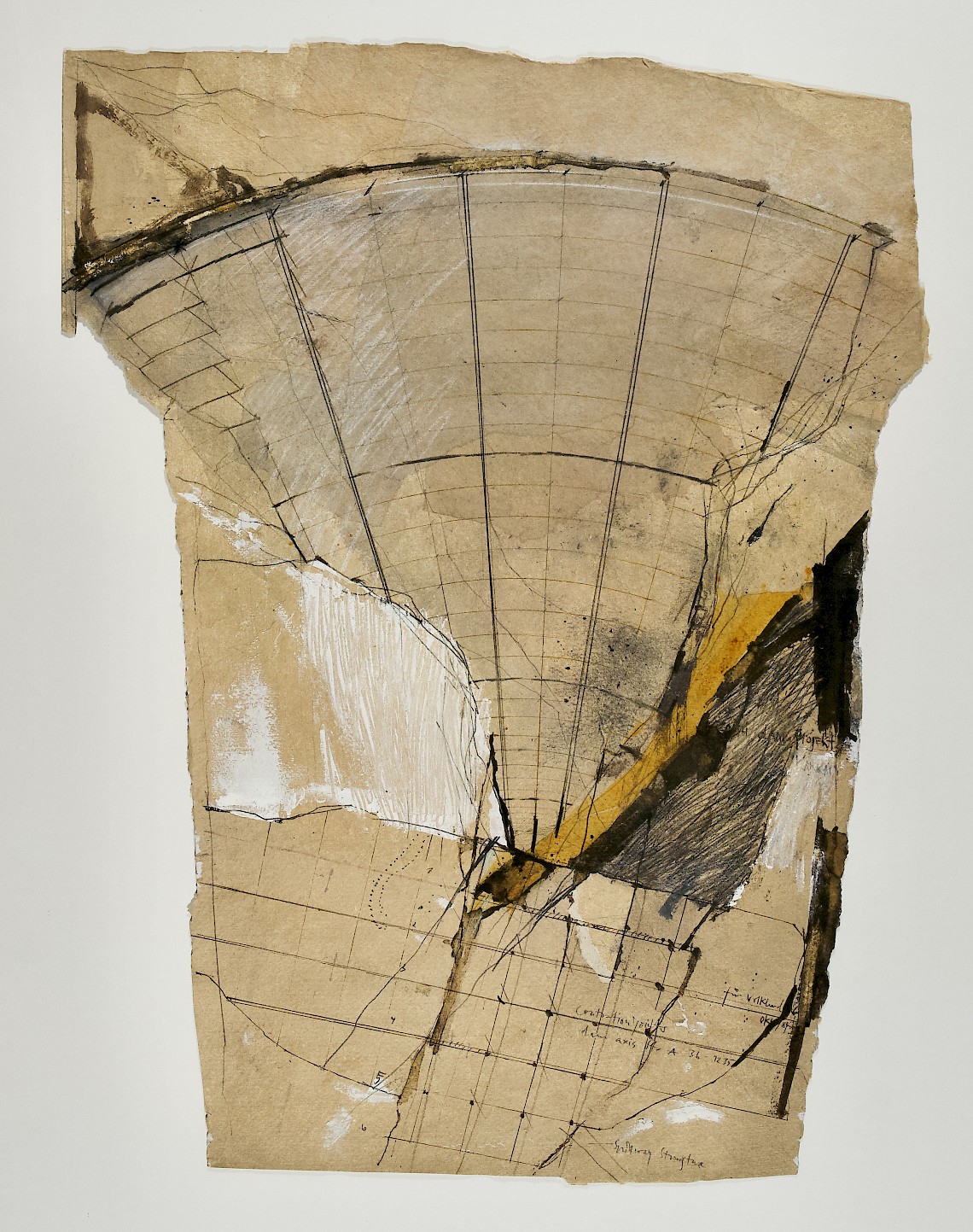 Bleistift, Farbstift, Tusche, Deckweiß auf berissenem Karton