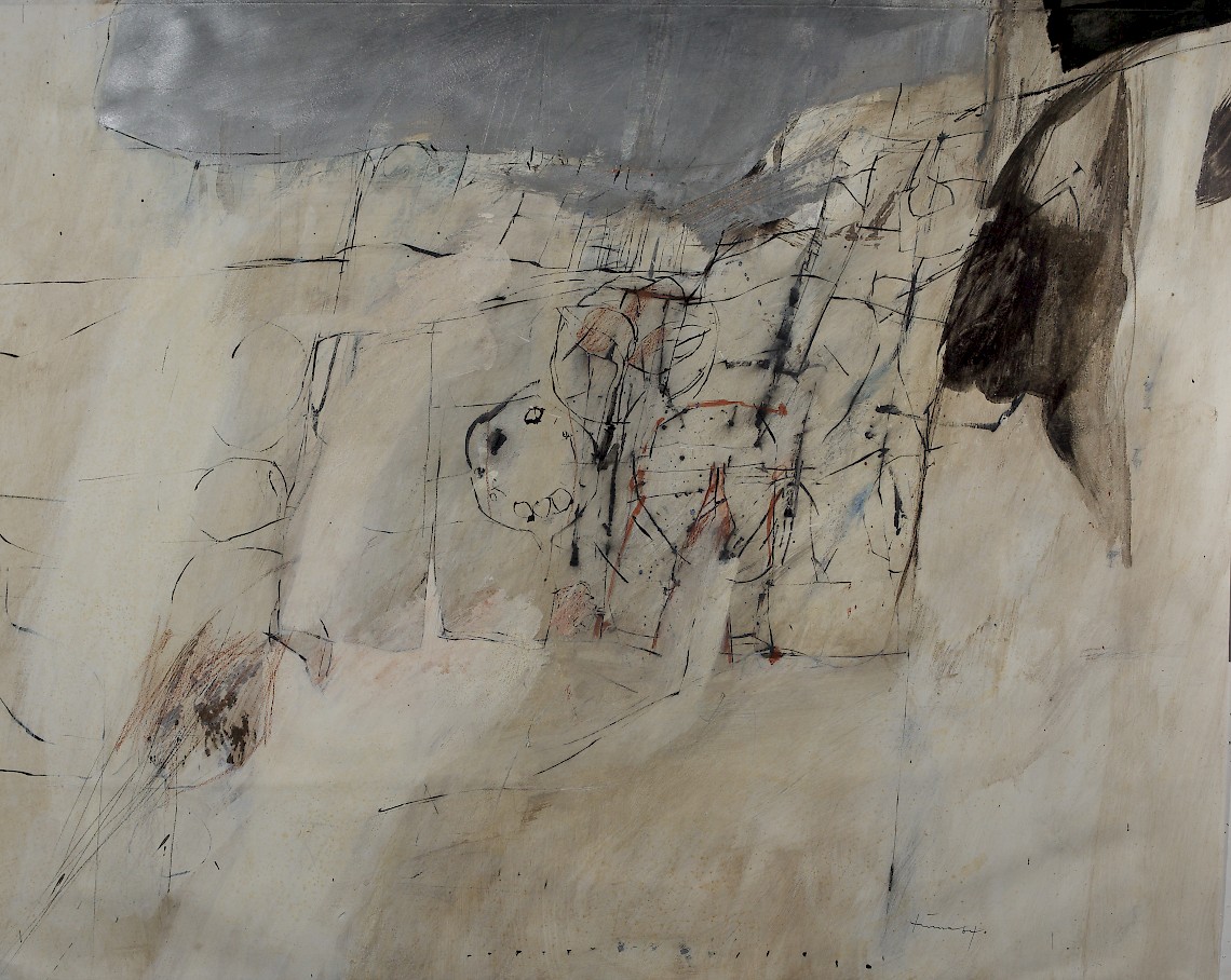Tusche, Farbstift, Deckweiß, Silberbronze auf Karton