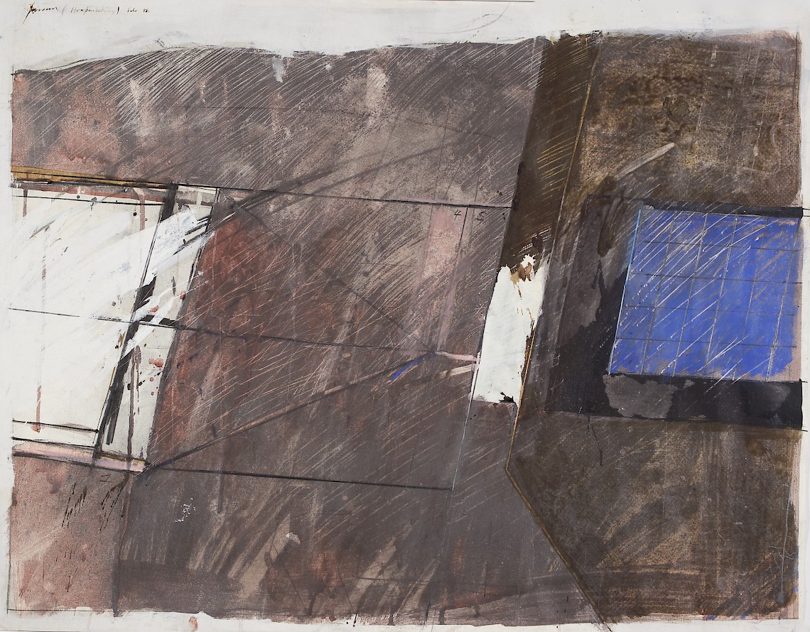 Bleistift, Tusche, Deckweiß, Graphitpulver auf Karton