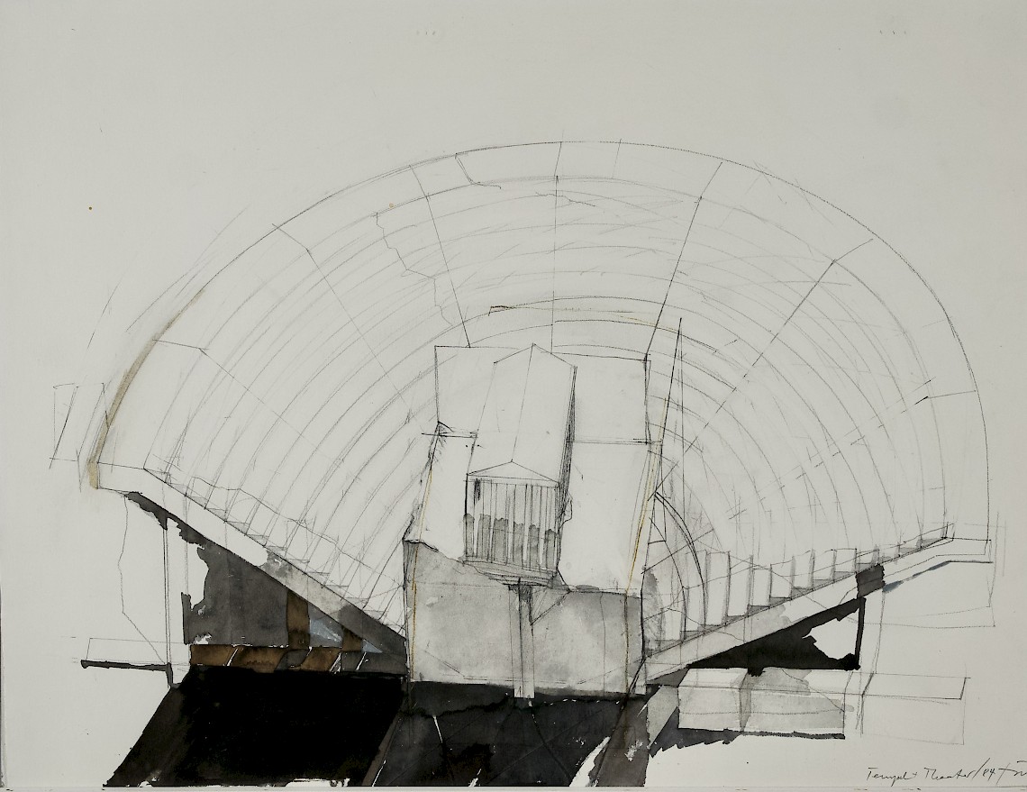 Bleistift, Farbstift, Aquarell, Tusche auf Karton